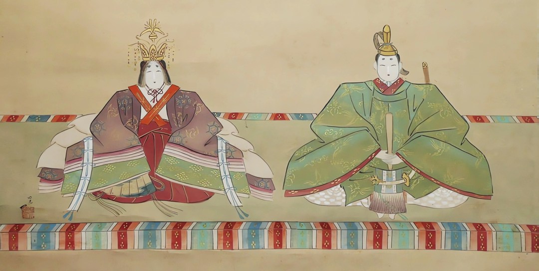Свиток (деталь) с изображением праздничных кукол японского императора (справа) и императрицы. Акинаки Хори