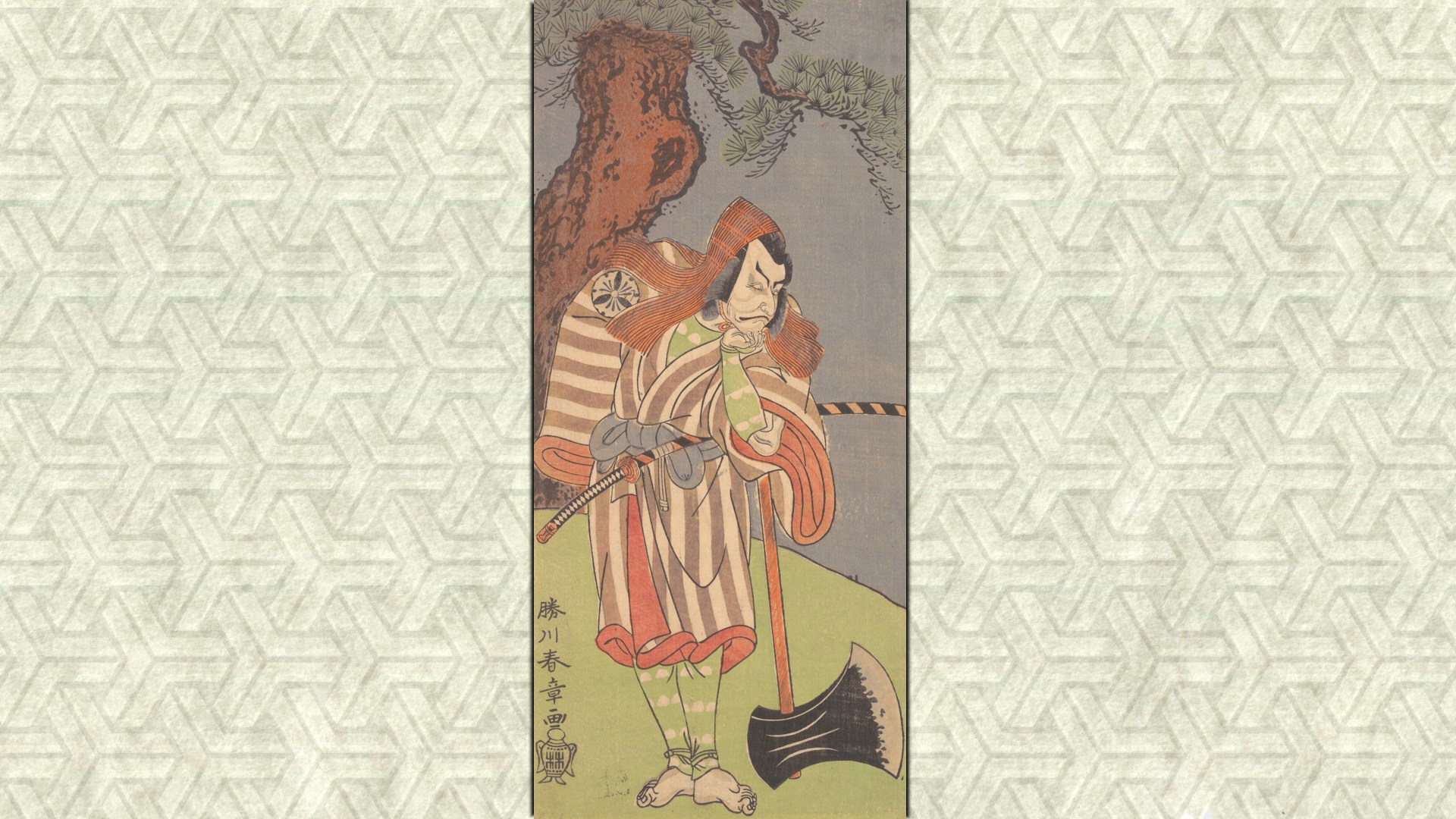 Картинка для привлечения внимания, актер кабуки Дандзюро IV с большим топором. Цветная гравюра на дереве. Кацукава Сюнсё, 1770 г.