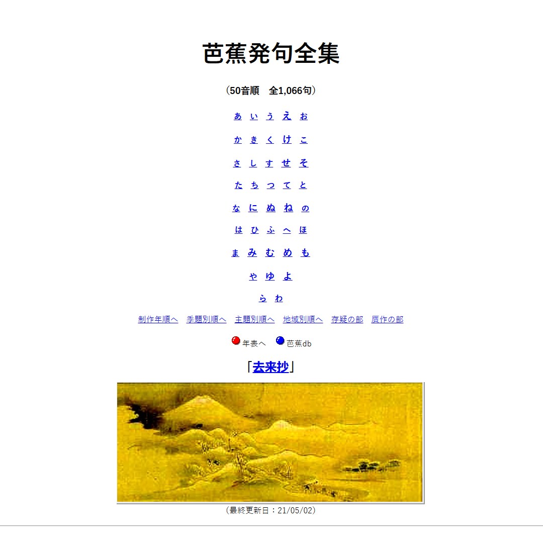 Японоязычный каталог стихотворений Басё с аннотациями (часто личными) японского ученого-инженера хостится на сайте университета префектуры Яманаси.