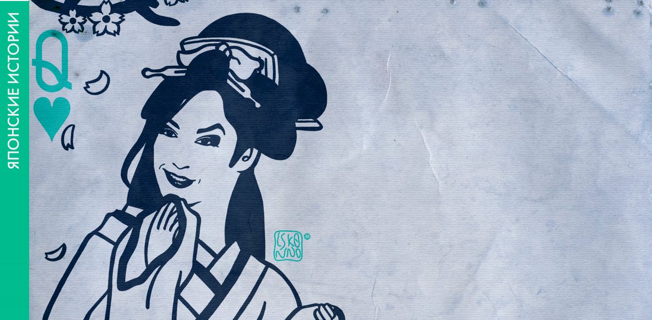А карты, надо сказать, у них были не простые: на каждой нарисовано по прелестнице, причем в самых соблазнительных видах. И вот однажды за игрой Сабуро засмотрелся на красотку, нарисованную на карте дамы червей. Глаза не как у соседских девчонок — большие и выразительные, черные брови вразлет, а рот... Ах этот рот!