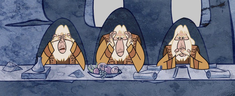 с закрытыми глазами, ушами и ртом. Зритель безошибочно считывает такие послания. Например, подобная сцена есть в классической экранизации романа «Планета обезьян» (Planet of the Apes) полувековой давности (1968 г.).