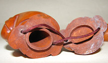 Устройство: фигурка разъемна, но вмещает только одну емкость (обычно инро состоят из нескольких отделений одно над другим). части инро соединены шнурком, пропущенным через отверстия-химотоси