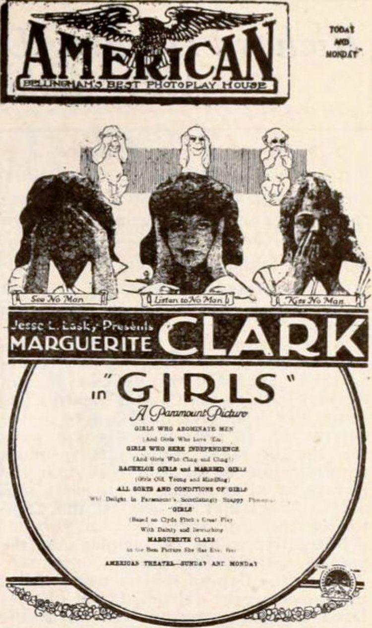 В 1919 г. американская компания «Парамаунт Пикчерз» начала распространять фильм режиссера Уолтера Эдвардса (Walter Edwards) под простым названием «Девушки» (Girls) по одноименной театральной пьесе самого модного тогда автора, Клайда Фитча (Clyde Fitch).