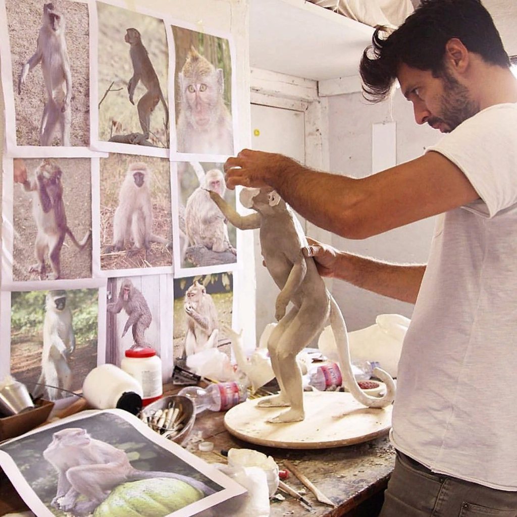 Вообще-то у автора есть светильники разного размера: от крошечных мышей, до жирафов в натуральную величину, держащих в зубах классические люстры. Но нам (а судя по международной прессе и не только нам) больше запомнились обезьяны.
